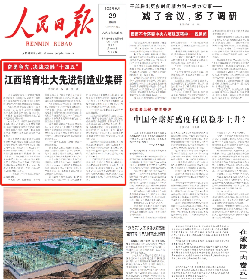 以京九鐵路沿線南昌、吉安、九江、贛州“四城”電子信息產(chǎn)業(yè)帶為驅(qū)動(dòng)軸,持續(xù)拓展產(chǎn)業(yè)輻射圈,江西電子信息產(chǎn)業(yè)規(guī)模連續(xù)3年站穩(wěn)萬(wàn)億元臺(tái)階;在上饒,晶科能源帶動(dòng)12家專精特新企業(yè),構(gòu)建起“硅片—電池片—組件—儲(chǔ)能”的完整光伏產(chǎn)業(yè)鏈,力爭(zhēng)光伏新能源先進(jìn)制造業(yè)集群2025年?duì)I業(yè)收入突破1700億元……